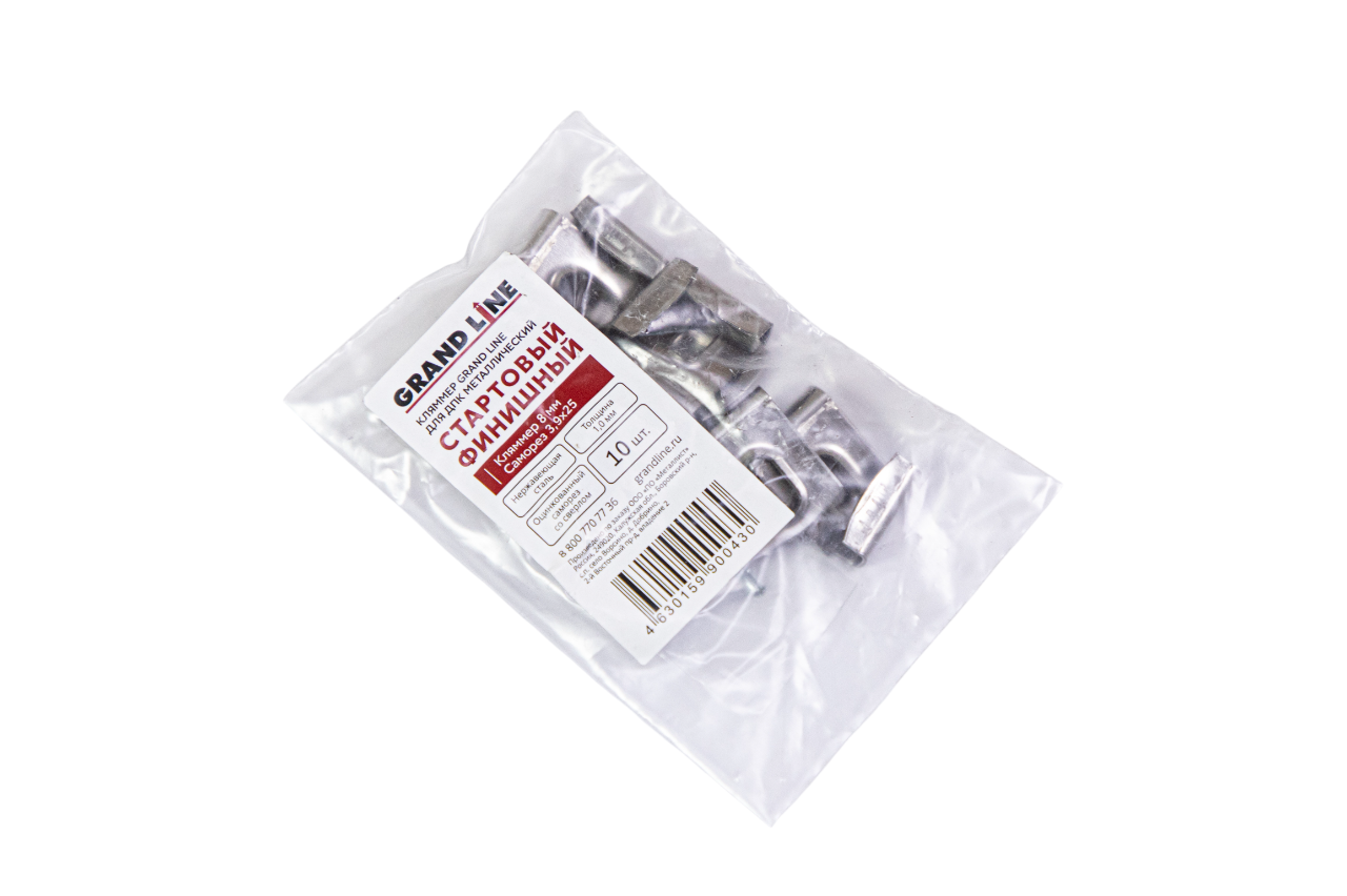 Все новостиКляммер Grand Line для ДПК металлический стартовый, финишный 8мм и саморез 3,9х25 (10шт)