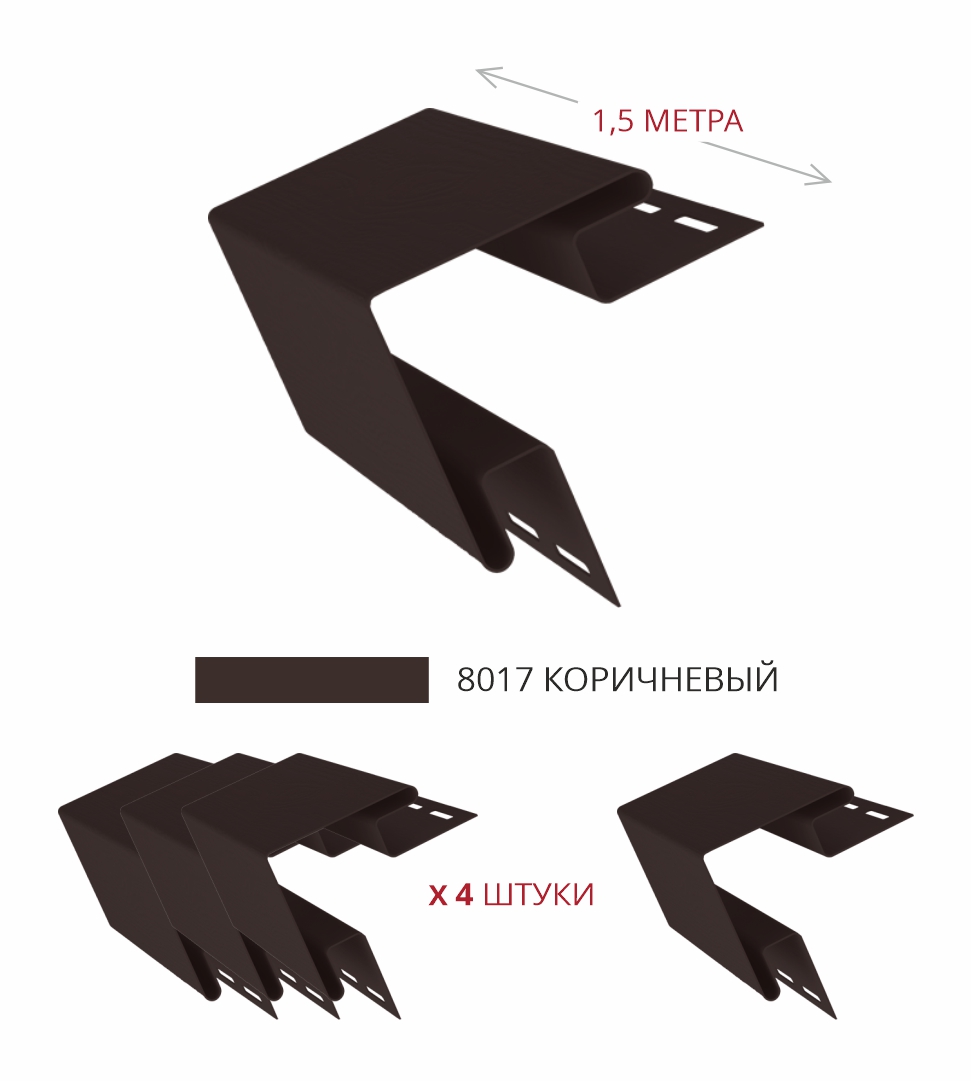 В комплект входит 4 наружных угла, что позволяет быстро оформить углы даже на крупных участках фасада и снизить количество стыков.