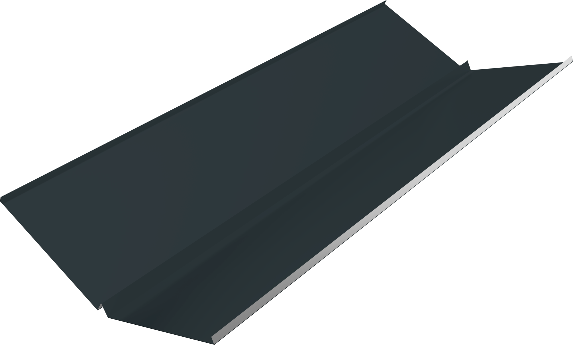 Конструкция нижней ендовы представляет собой металлический желоб, устанавливаемый в зоне соединения скатов. В стандартном исполнении элемент имеет широкие полки по 30 см, с аккуратным загибом 12 мм по краям, что предотвращает перелив воды под кровельное покрытие.