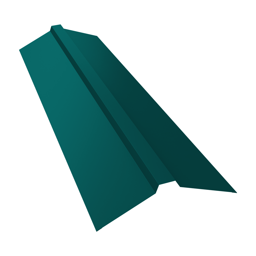 Планка конька прямоугольного предназначена для защиты от попадания влаги, грязи в подкровельное пространство и от срыва листов порывами ветра, закрывая листы металлочерепицы или профнастила на коньке и наружных переломах кровли.