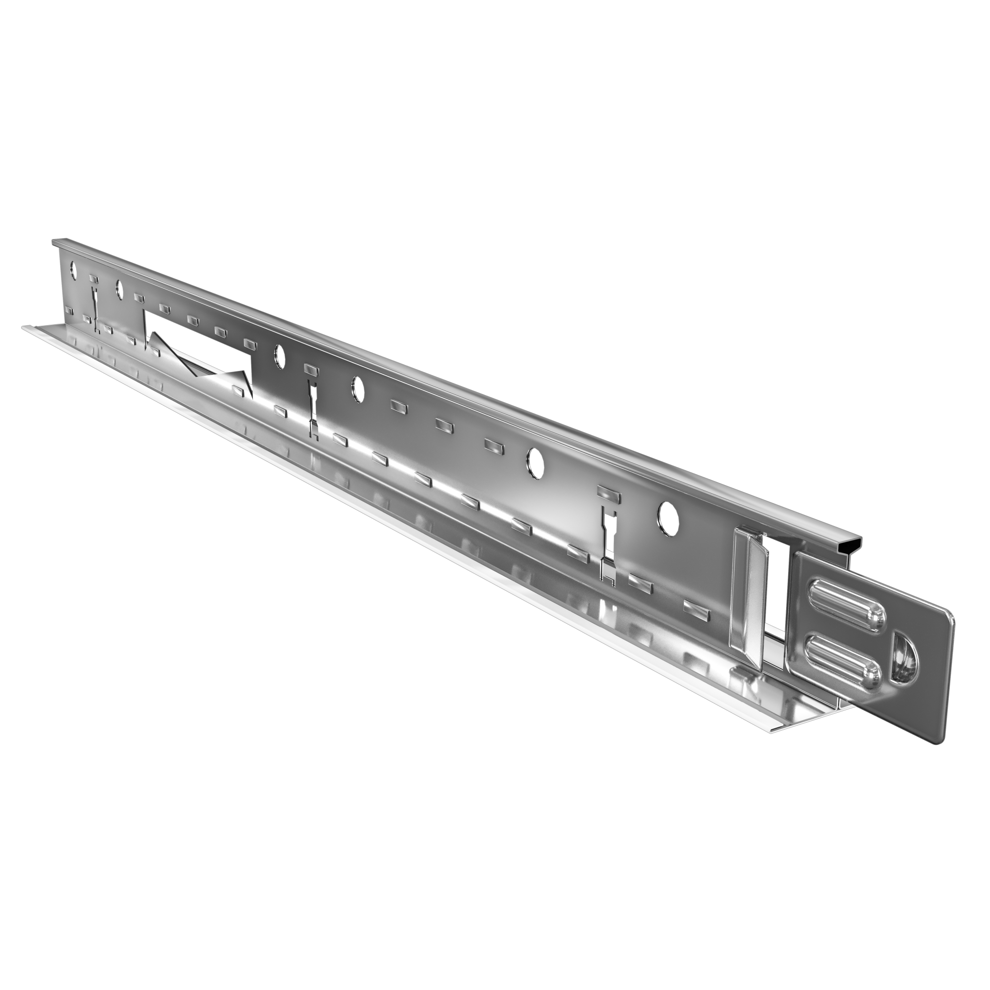 - слоты на несущих рейках системы расположены каждые 100 мм - позволяет монтировать нестандартные и оригинальные решения с применением узких плит и светильников