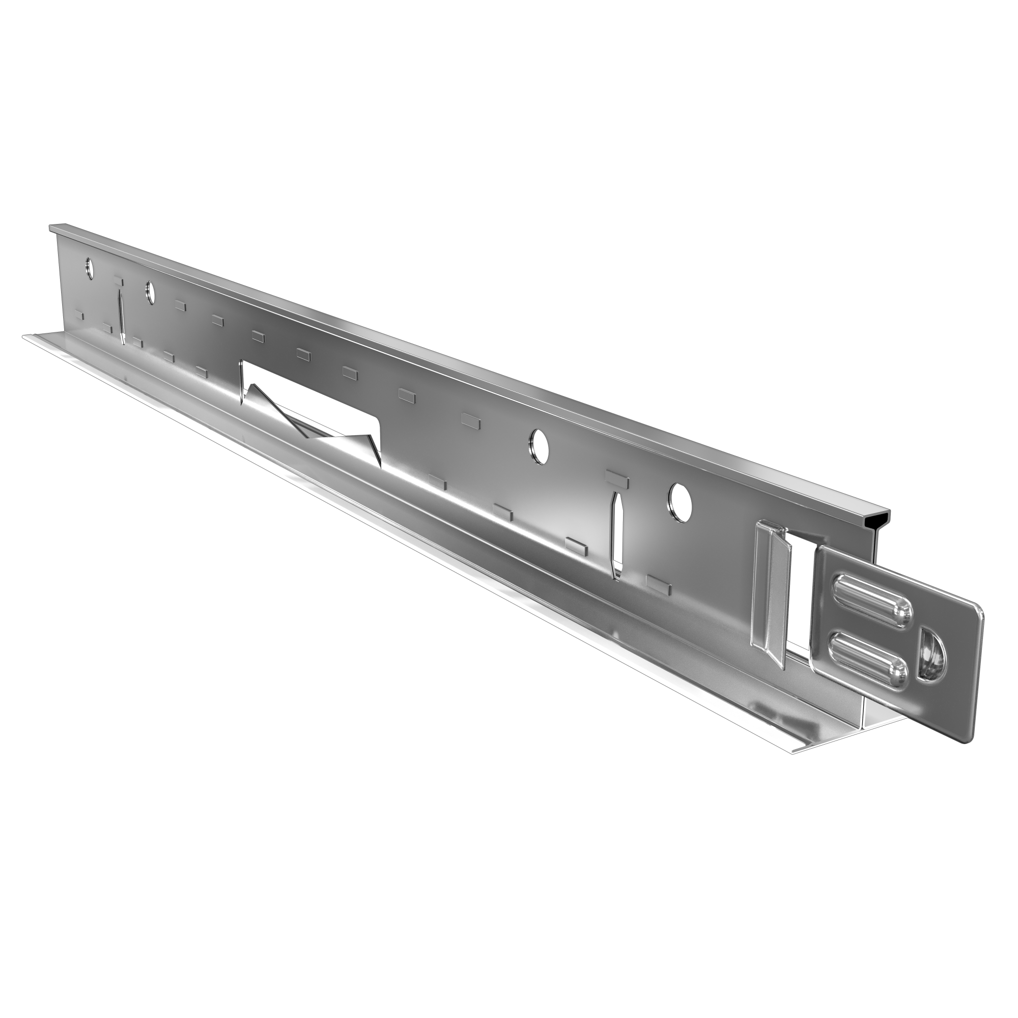 - слоты на несущих рейках системы расположены каждые 100 мм - позволяет монтировать нестандартные и оригинальные решения с применением узких плит и светильников
