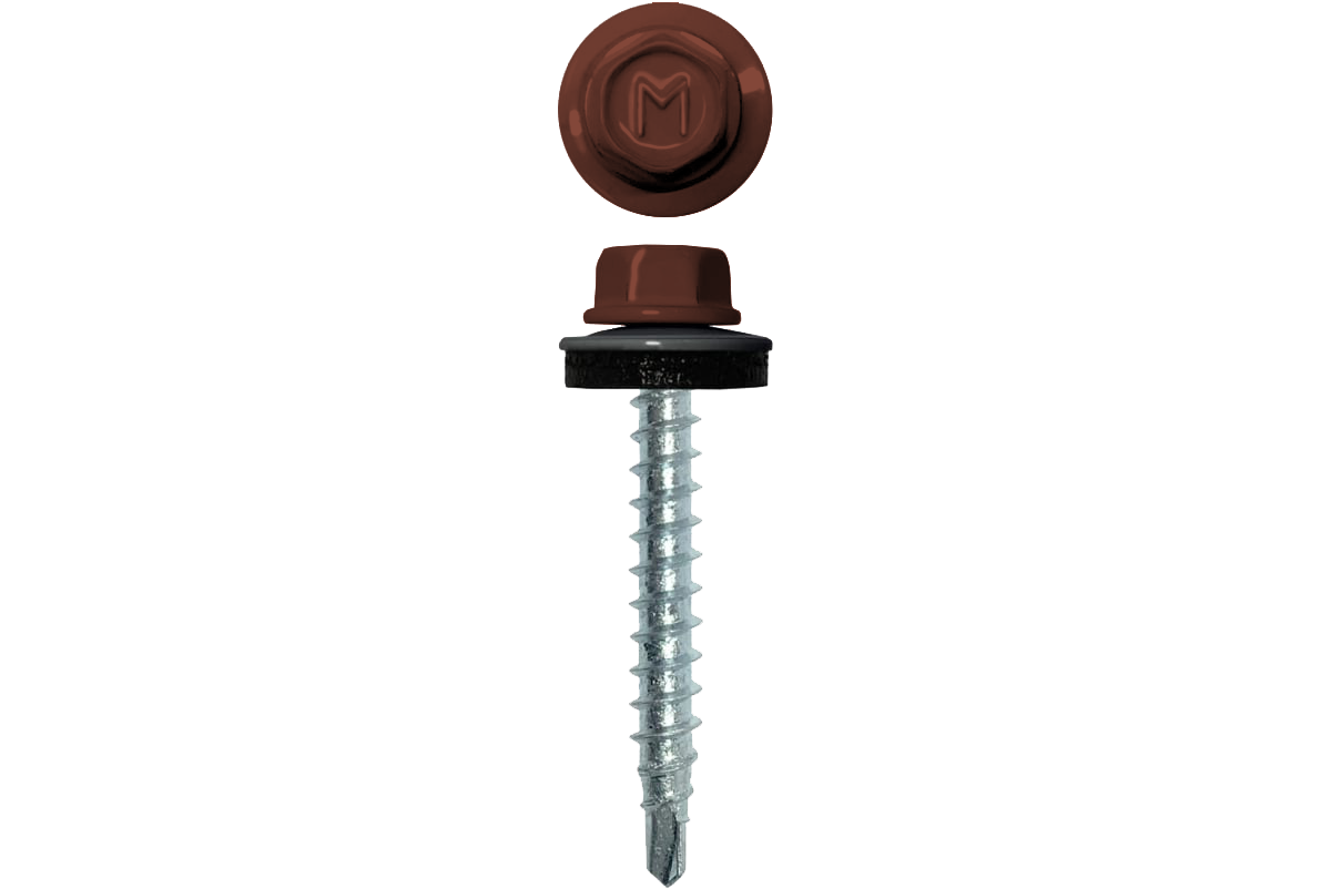 Специальная металлическая шайба с ЕРDМ - уплотнителем обеспечивает плотное прилегание профилированного металла (кровли) к деревянной обрешетке, а также препятствует попаданию влаги.