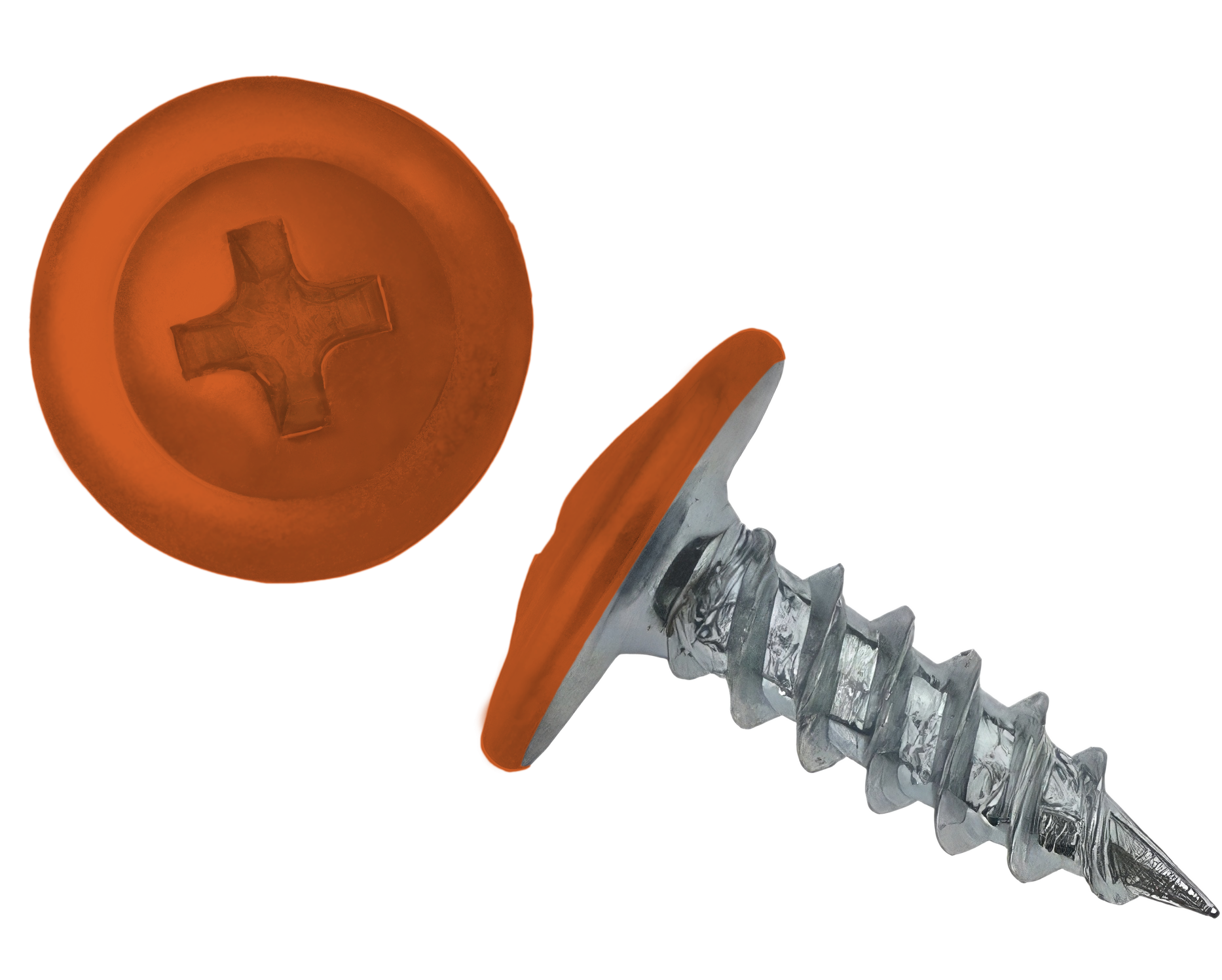 Саморез с напрессованой шайбой (ПШ) - имеют широкую плоскую головку под крестовидную биту (PH2), которая одновременно выполняет роль шайбы. Наконечник оцинкованный - острый.
