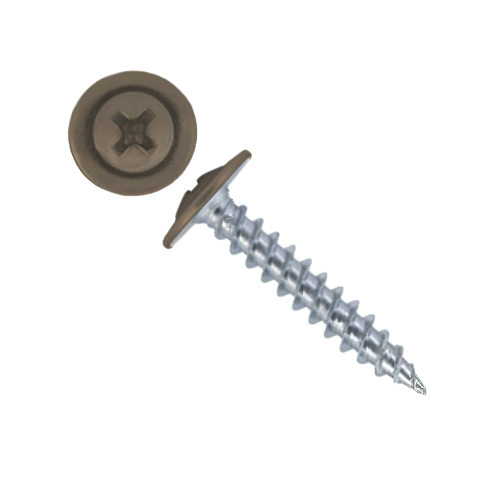 Саморез с напрессованой шайбой (ПШ) - имеют широкую плоскую головку под крестовидную биту (PH2), которая одновременно выполняет роль шайбы. Наконечник оцинкованный - острый.