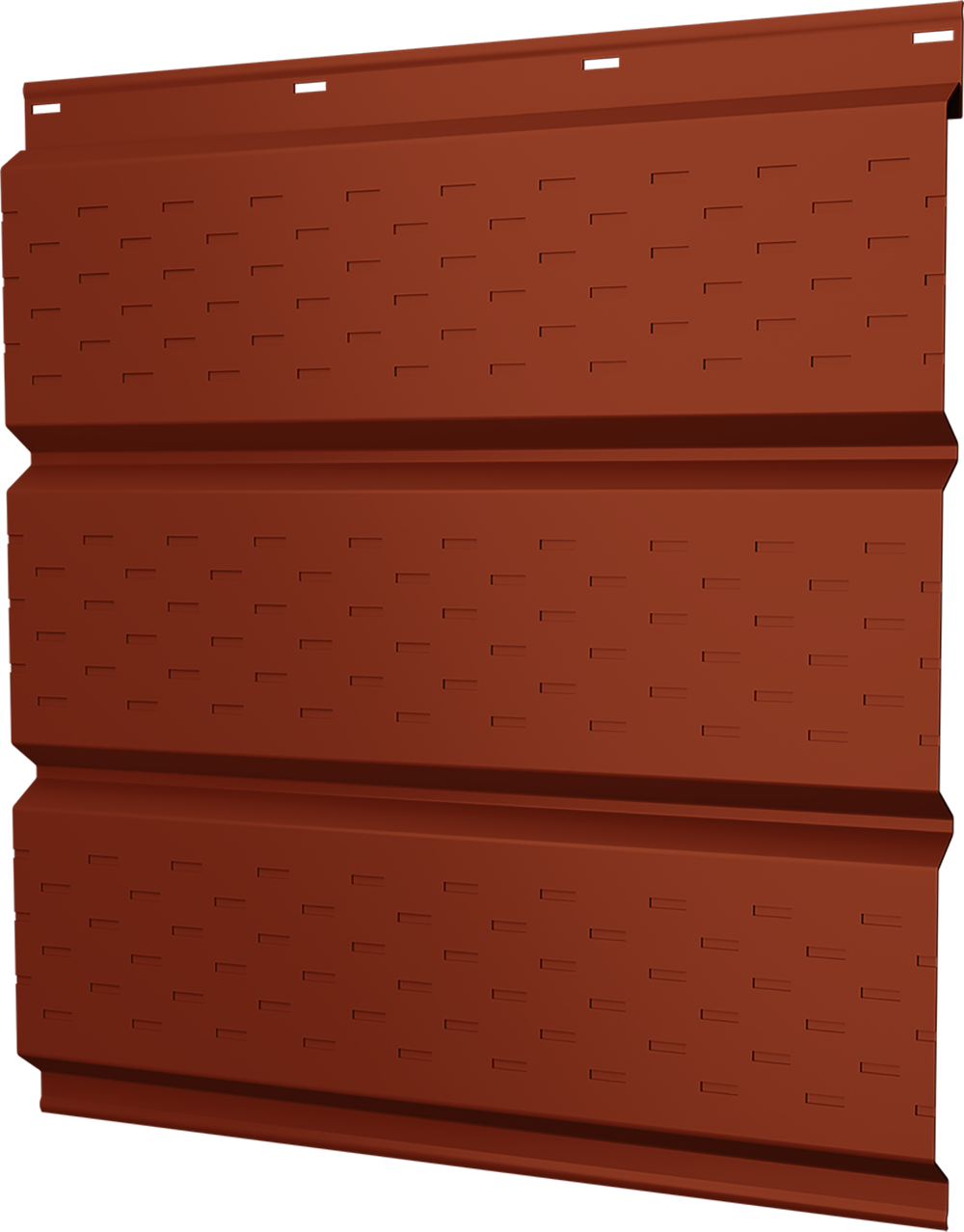 Все новостиСофит металлический Классик Grand Line полная перфорация 0,5 Satin с пленкой RAL 8004 терракота