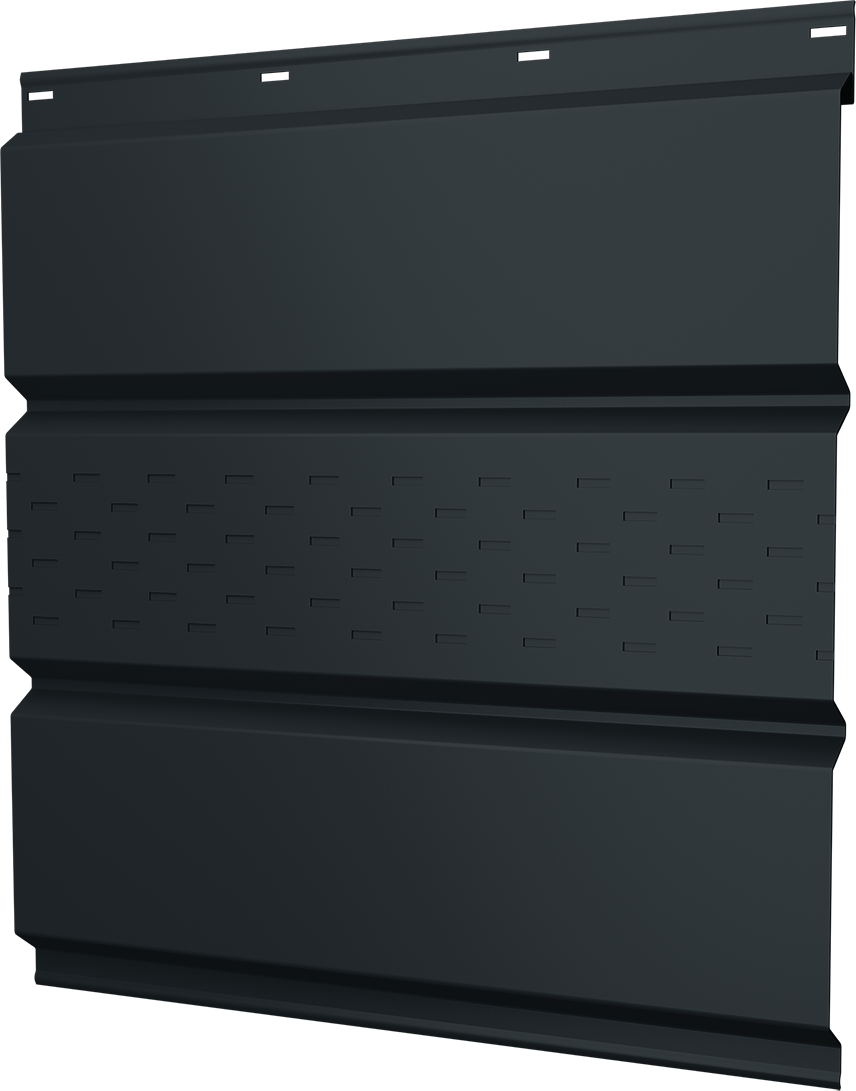 Все новостиСофит металлический Классик Grand Line центральная перфорация 0,5 Rooftop Бархат с пленкой RAL 7016 антрацитово-серый