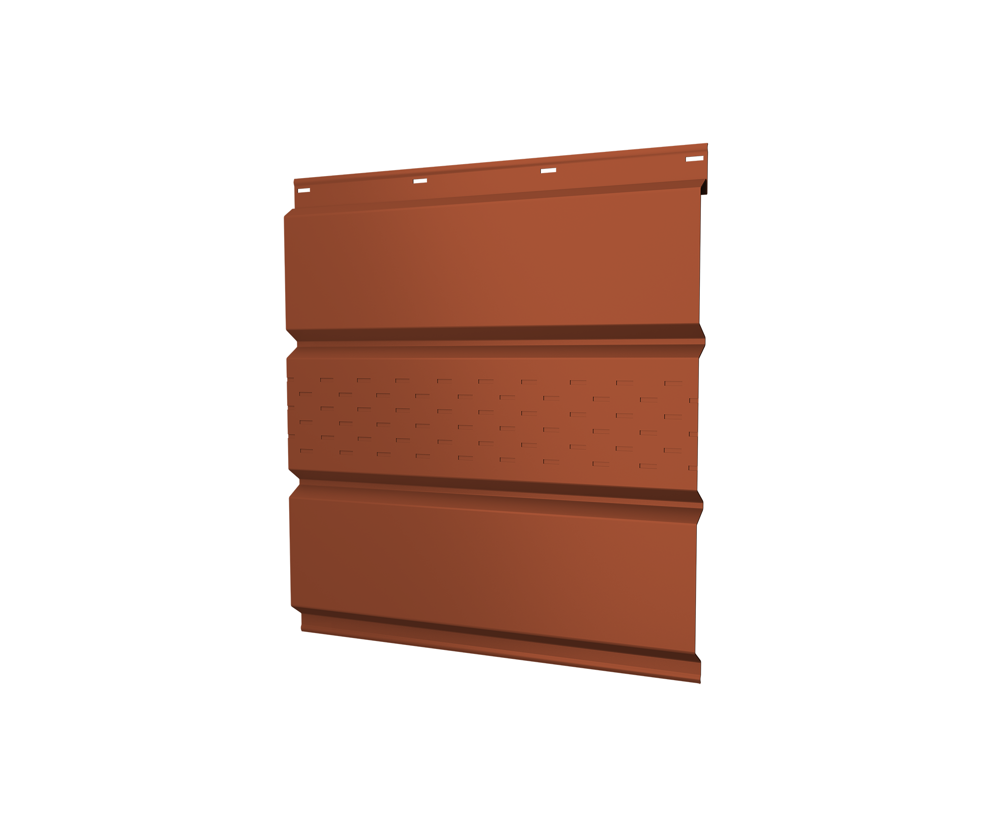 Все новостиСофит металлический центральная перфорация 0,5 Velur X с пленкой RAL 8004 терракота