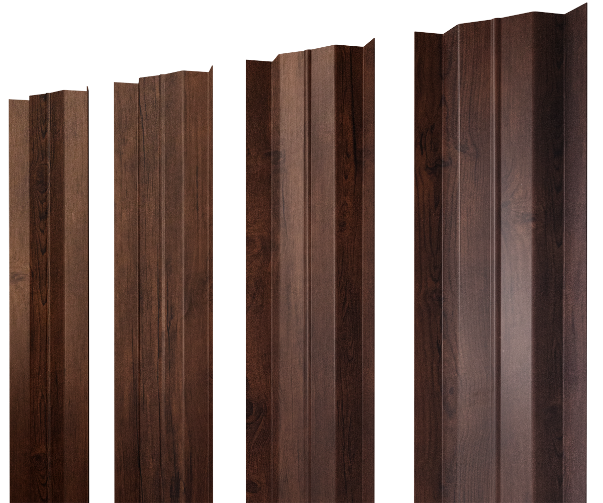 Штакетник М-образный В с прямым резом — вид штакетника отличает выпуклая во внешнюю сторону форма с ребром на центральной части и дополнительными боковыми ребрами. Этот профиль можно назвать самым жестким.