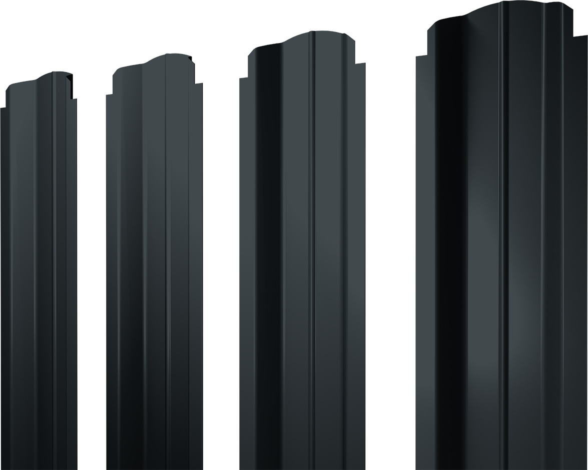 Штакетник П-образный B фигурный Grand Line 0,5 Satin Matt TX RAL 7016 антрацитово-серый